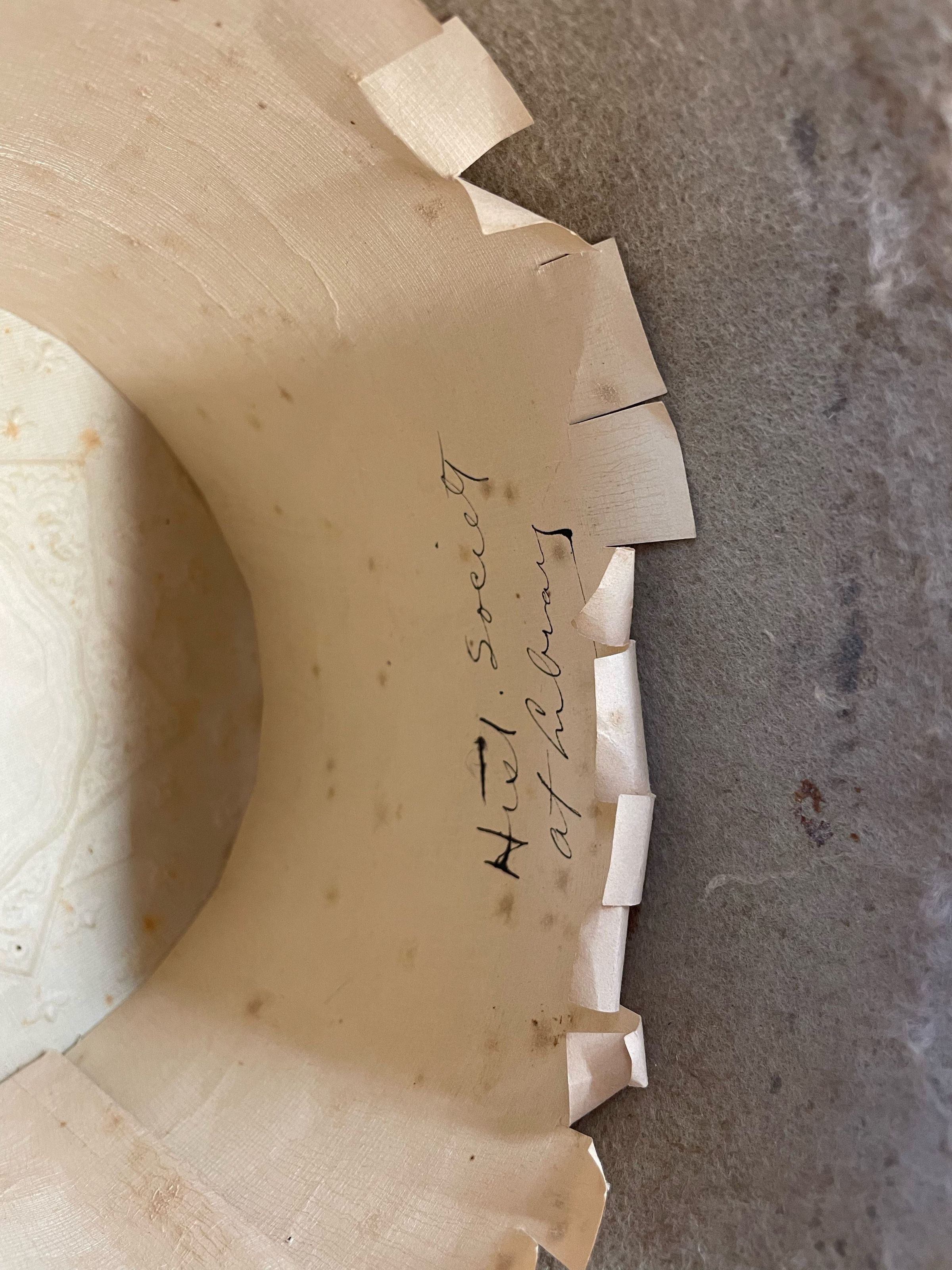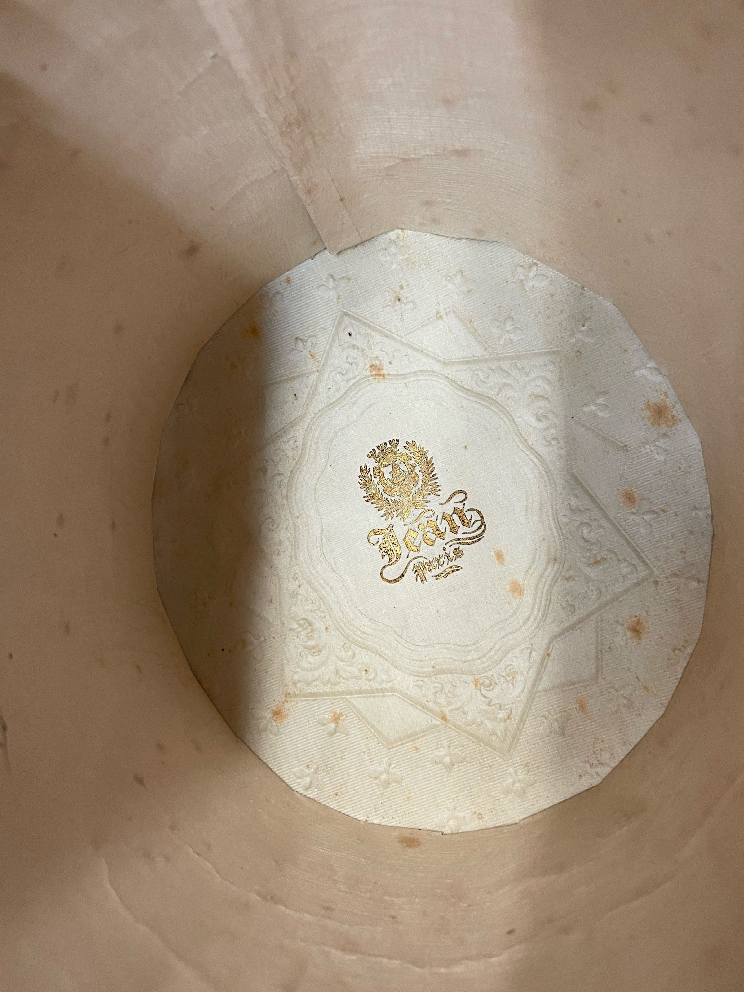 Go back Prev Next Top Hat Object/ArtifactDescriptionTop hat made in Paris. Bleached beaver felt. c.1800-1830